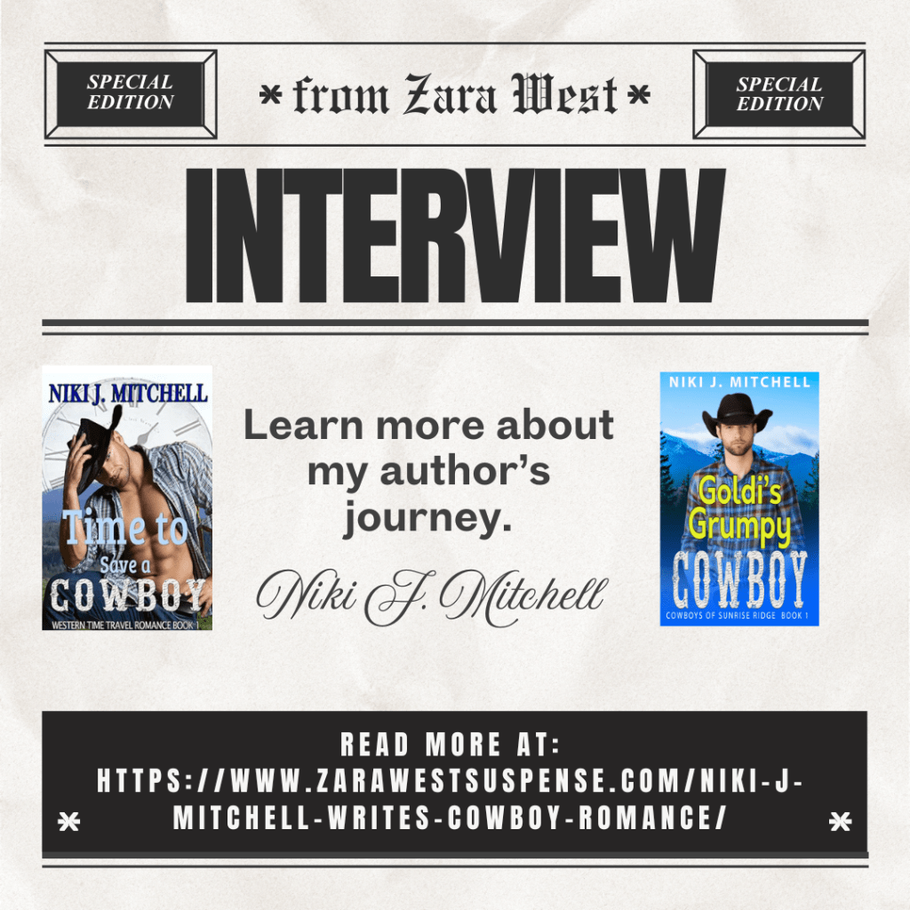 #smalltownromance #booksofthreads#cowboyromance htpps://www.zarawestsuspense.com/niki-j-mitchell-wrties-cowboy-romance/